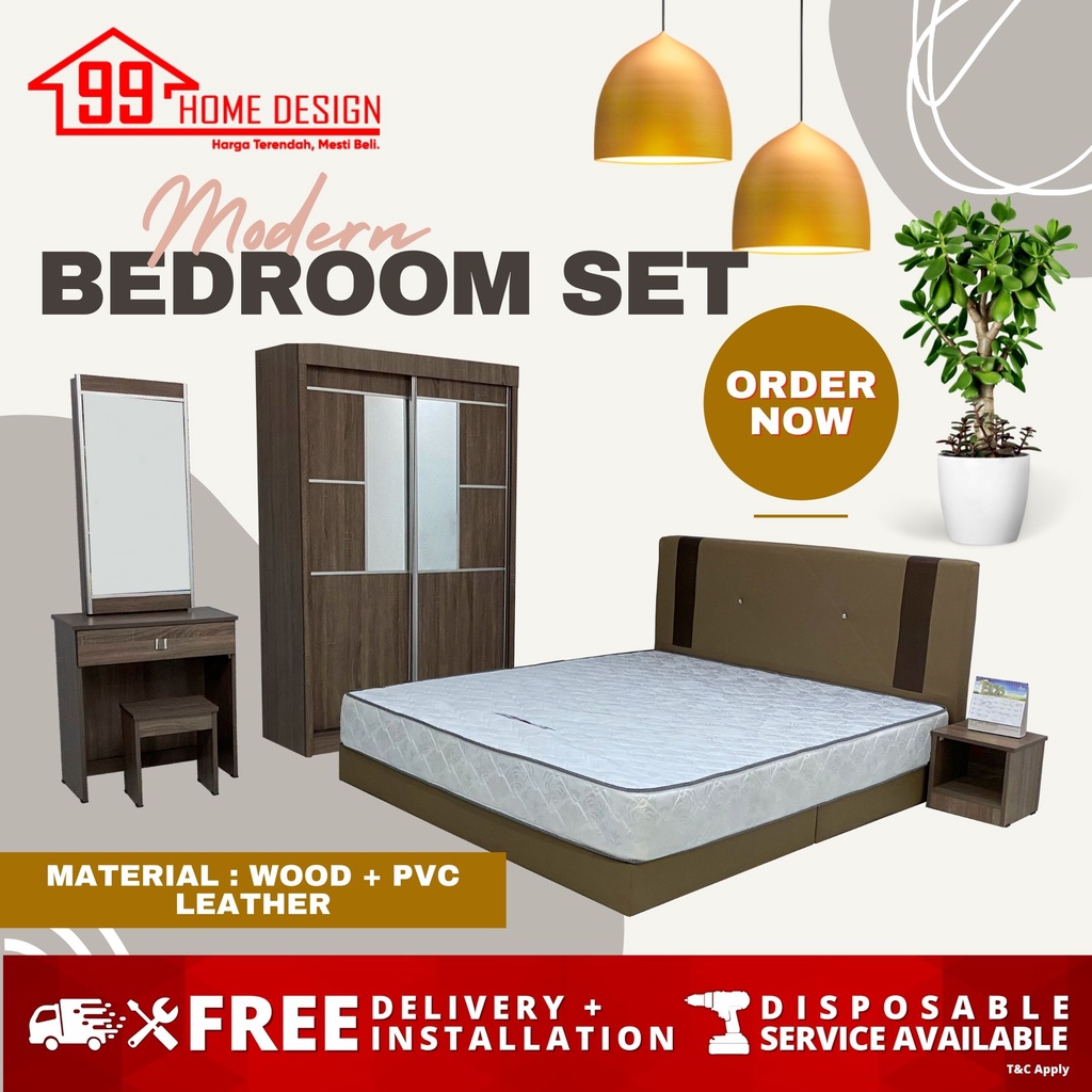 Limited Special Sale Promotion Bedroom Set 8 X 8 Full Set With Dressing Table Set Bilik